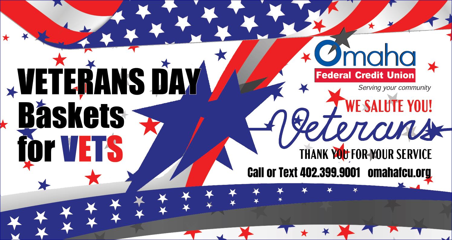 Our Main Branch at 3001 S. 82nd Ave. in Omaha will also have a decorated Vets donation box inside the lobby door to place any in kind donation items. Any items for elderly Veterans (male and female) are welcome – just ensure they are NEW, unopened with original packaging and unwrapped. NOTE: Please DO NOT put the items in a basket – we will be dividing all the items up fairly to insert them in branded tote bags that we (OFCU) have already purchased.