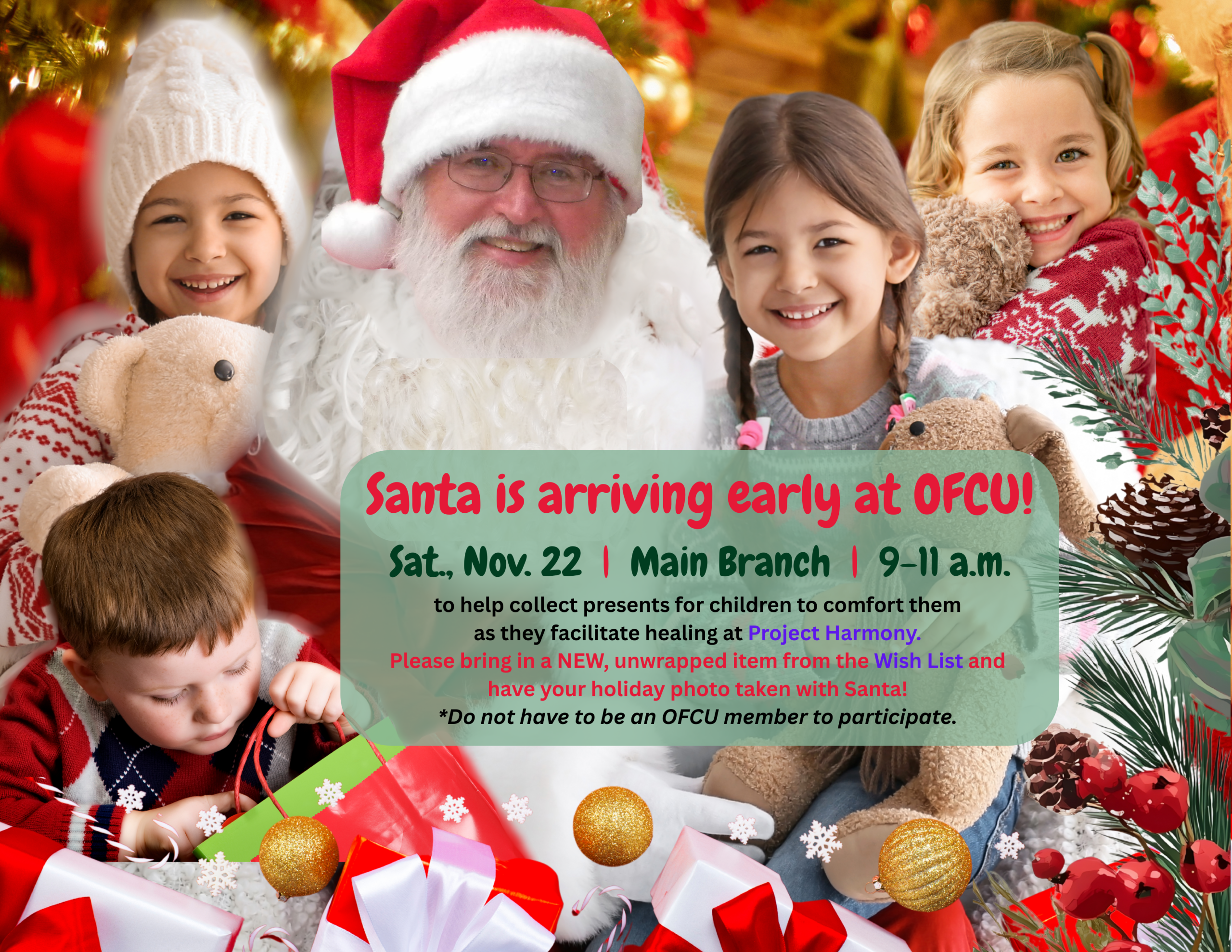 Please spread the news! In partnership with Project Harmony, we hope you take part in this great cause for all, especially for children! Remember, toys and/or monetary donations need to be dropped off to one of our branches no later than Dec. 10, 2025.